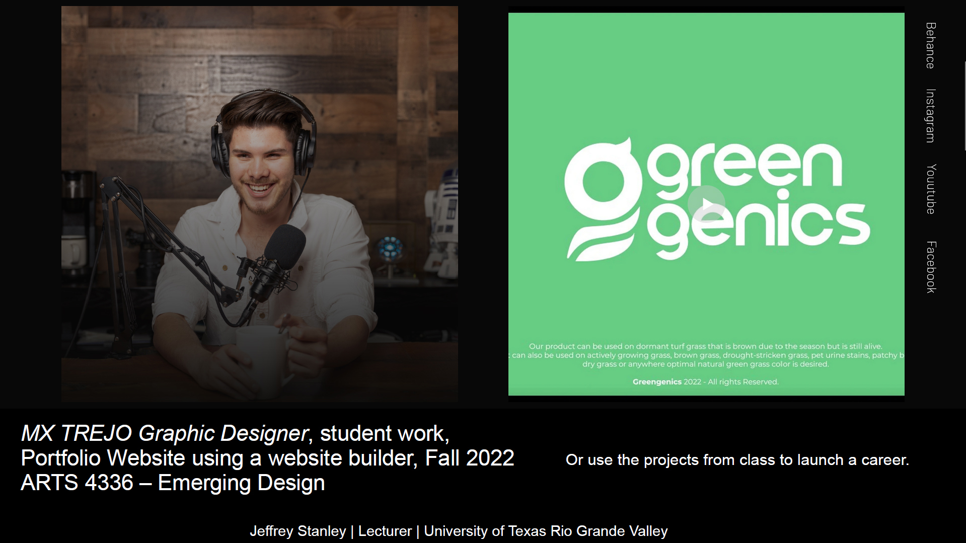 My students have accessed careers across multiple disciplines: video production (HBO, 72andSunny, and started their own companies) partnering with companies like adidas, Google, and the NFL; design (ARC Studio LLC New York, Matiz Architecture & Design); UI / UX Project Management with companies such as Amazon, GE, and Meta; and even bridged disciplines like Civil Engineering with Art Practice.