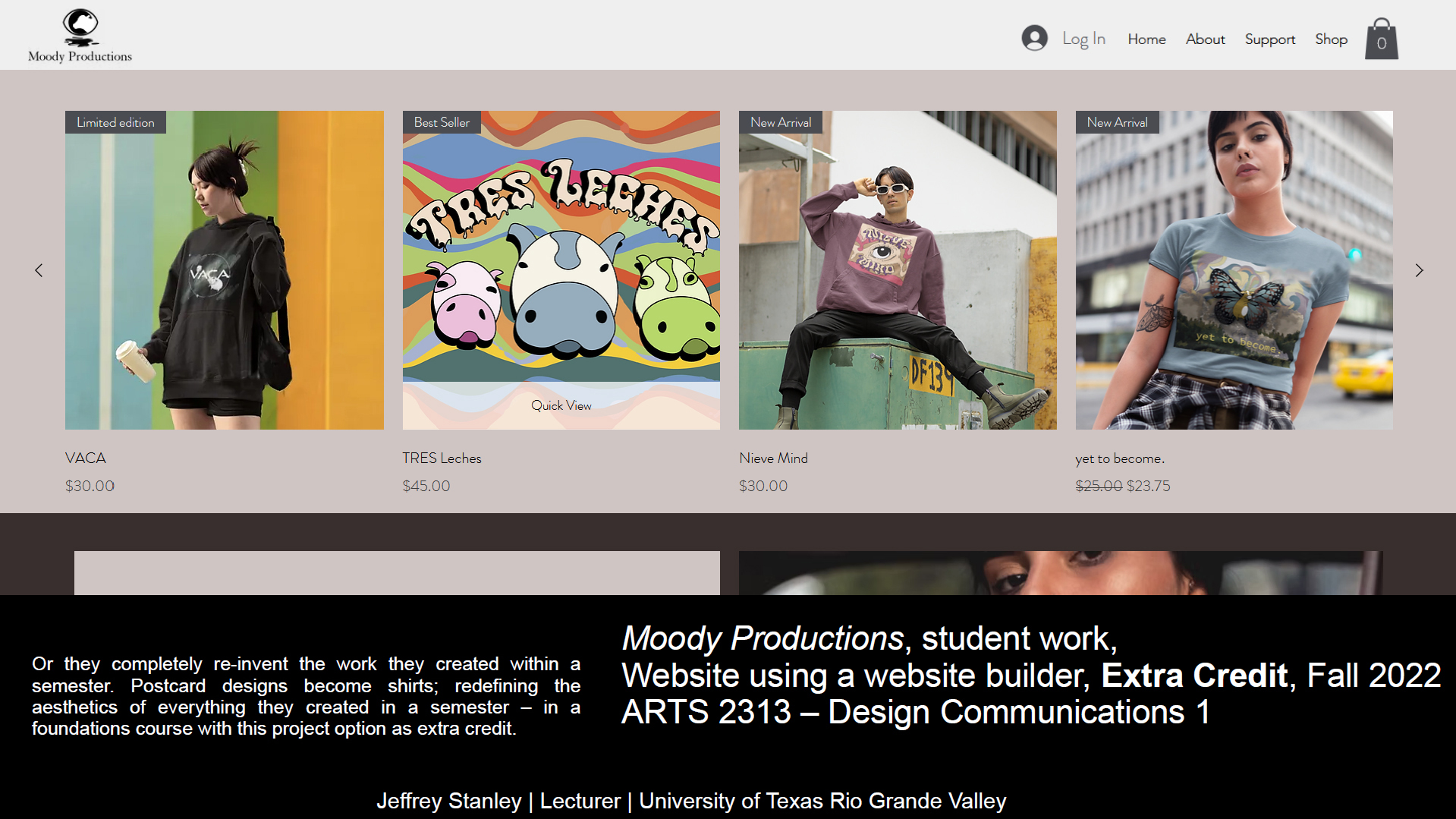 Examples of student work from University of Texas Rio Grande Valley 2021-2024; and The University of Texas at Austin (2024)